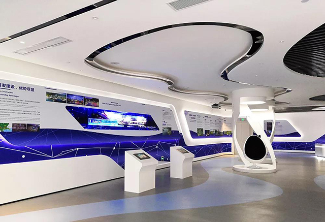 步入展厅大堂映入眼帘的是一个极具现代感的不规则展示区域,这里设有一块不规则的LED大屏幕,用来循环播放深汕湾科技城发展的宣传片。考虑到整个该场馆的建筑设计,该展厅采用了同轴壁挂音箱及具有可扩展音响系统低频响应特性的超低音低音单元,其设计满足了对音质的完整性及要求苛刻的专业场所应用,即使在声音收到严峻挑战时,也有意想不到的出色表现。