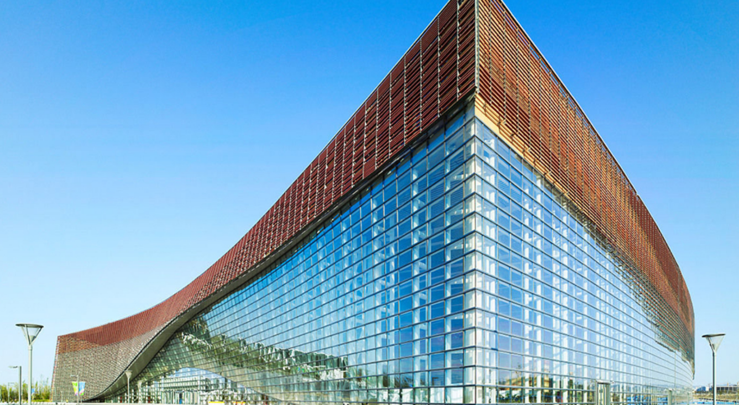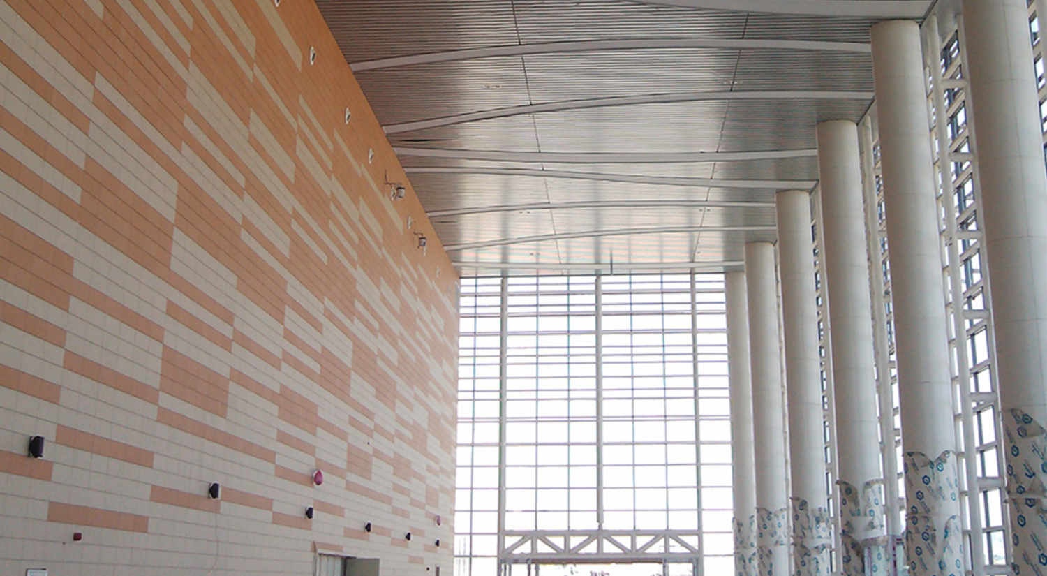 克拉玛依会展大厅还可以被自动升降的聚合物活动屏风分为两个5500平方米的小厅。
